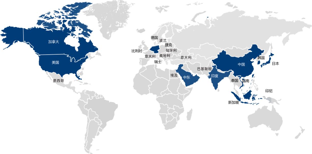 业务涉及北美、欧洲、亚洲的十余个国家/地区为全球客户企业带去快捷、可靠的技术与服务。